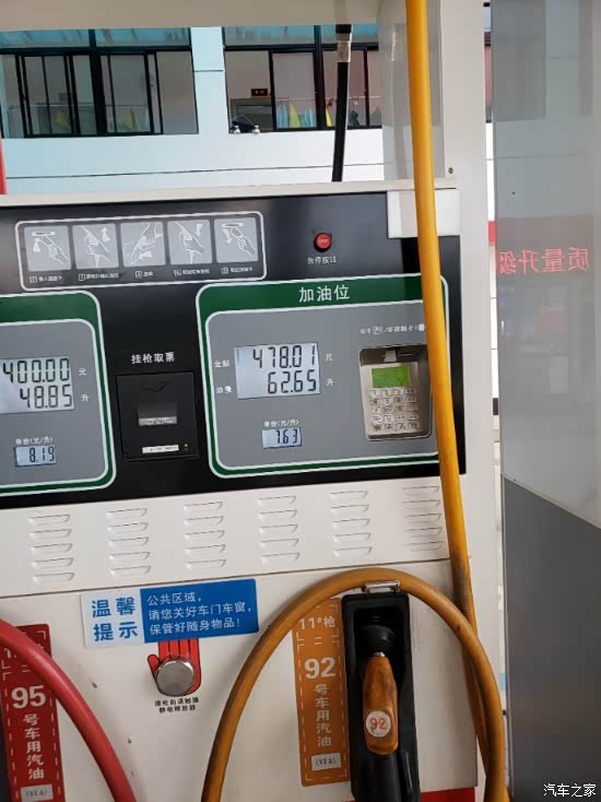 下面是油箱容量,到红线去加的话大部分时间是能加50-60升左右跳枪,最多的一次亮灯了还跑了一百来公里,加了70多升,所以D90的油箱应该是75升的……