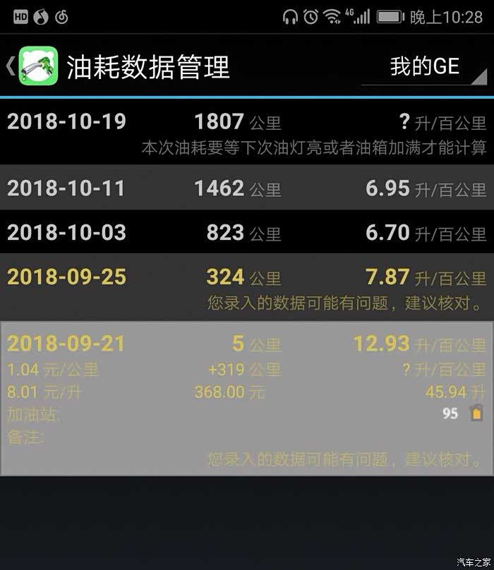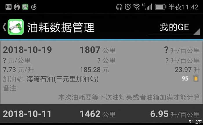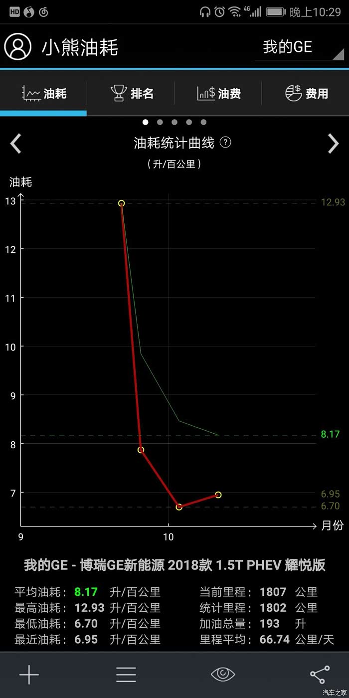 9月21号,楼主终于成为了GE的车主,人生的第一台车,有点小激动。购入GE的首要原因呢,是新能源不用摇号(广州人伤不起)。购车之前就很好奇GE这车,如果长期不充电,油耗表现如何。因为楼主家住广州老城区,没地方装充电桩,最近的充电桩离家5公里,一个来回10公里。提车之后就用小熊油耗记录了一下。