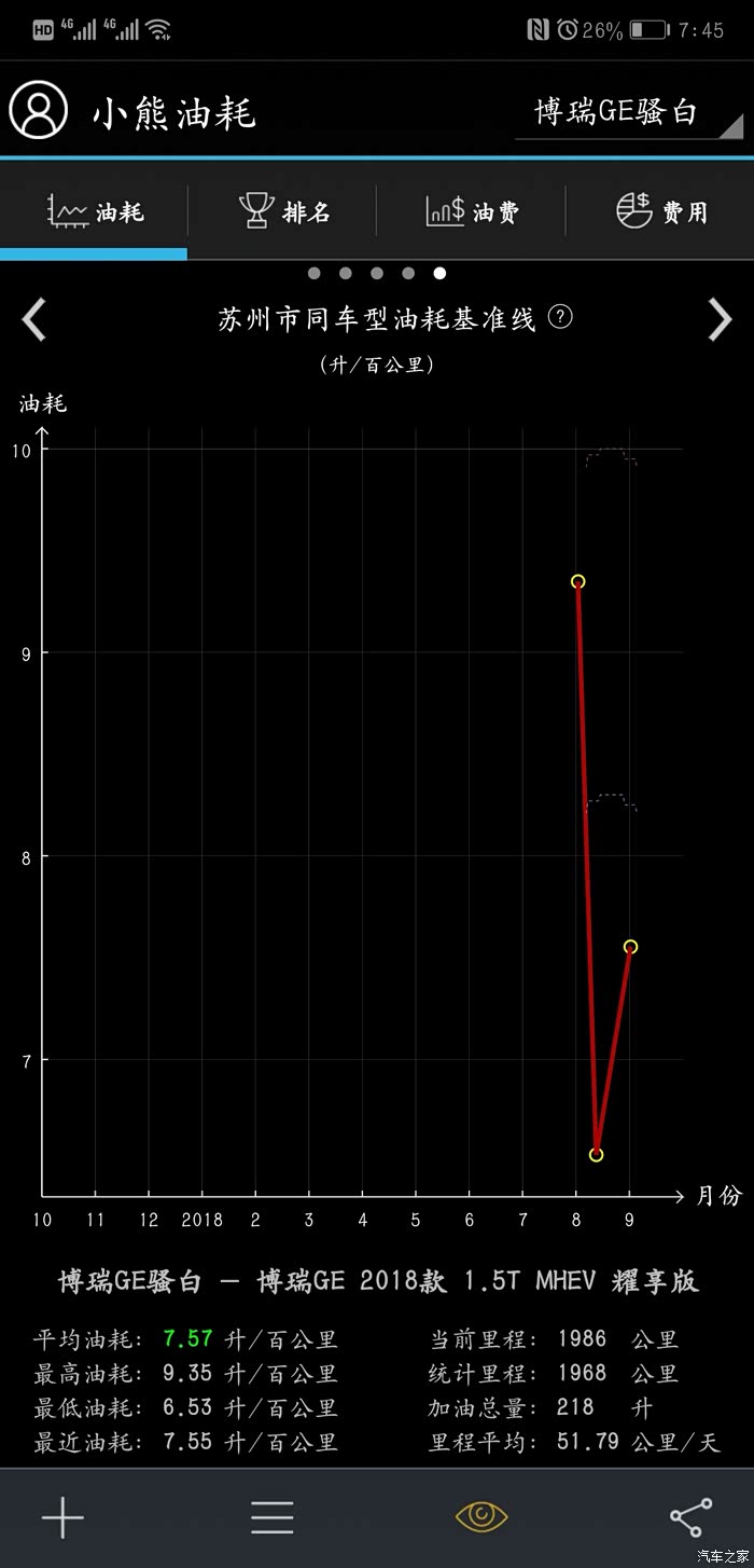 做为一款B级车这个油耗我是很满意,而且首保都没有过,另外各位明白,这是轻混版本,不要在拿混动说事情,我已经听烦了!