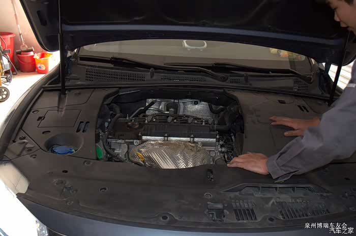 清洗节气门,需要打开发动机舱盖,拆护板,拆节气门,为了让车友等下施工少碰点灰,我先擦擦灰~