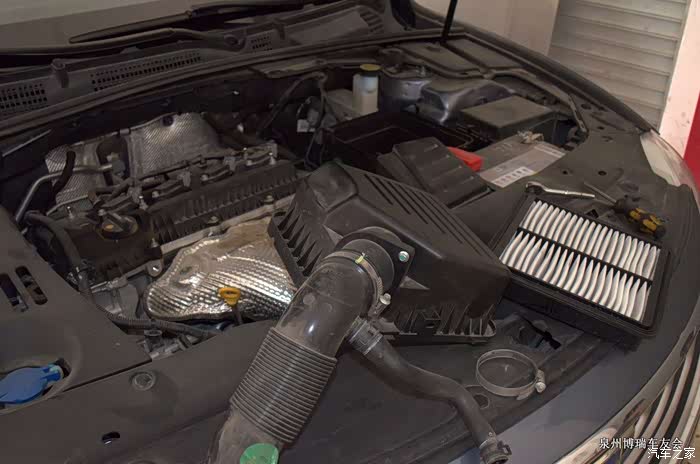 来晚了,都已经拆出来了,这是2.4L发动机,与1.8T发动机的节气门位置有点不同,2.4L的直接在进气滤芯的旁边,而且在外面,很好拆,往下看可以看到对比。