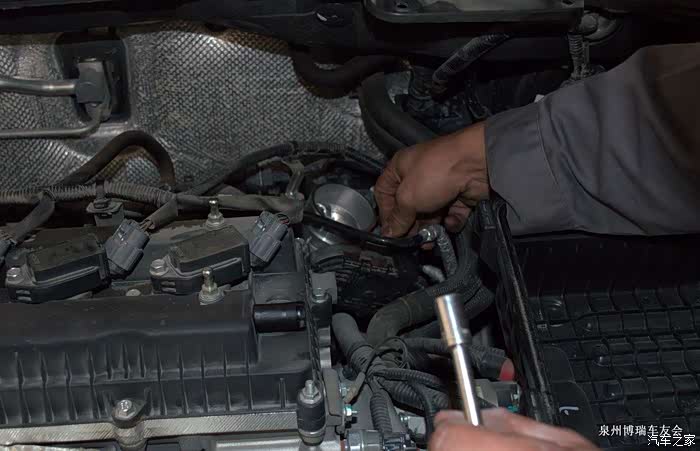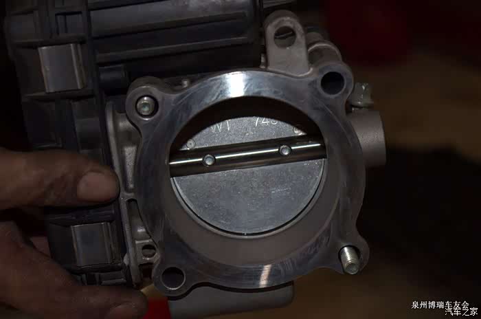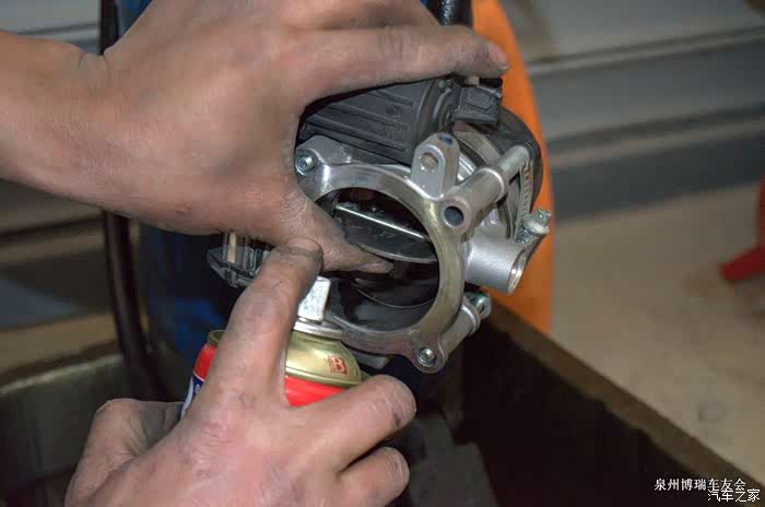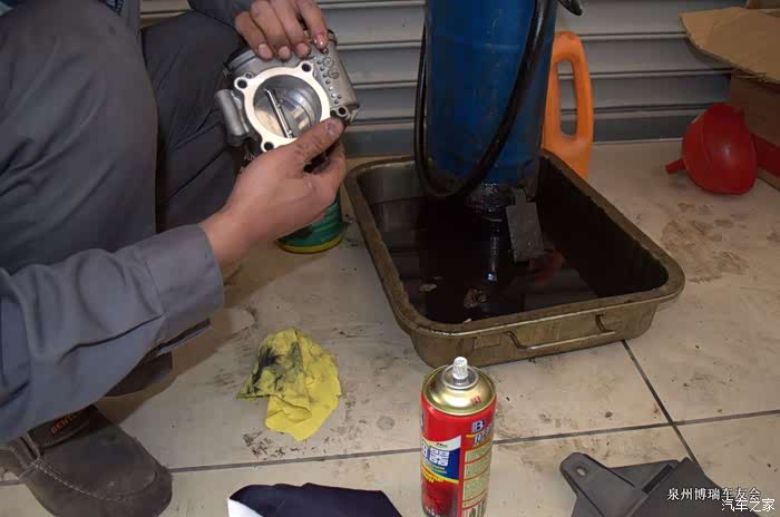 还在擦洗中的2.4L发动机节气门,碧玺会车友已行驶了将近3万公里,对车子的保养也是比较注重。