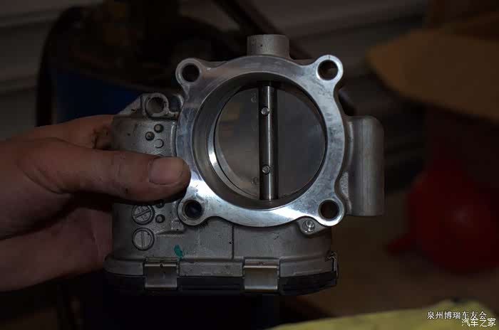 洗好了,白亮亮的气节门内壁,这样空气进来的时候,扇叶张开,也就不会有杂志进入到燃烧室了。