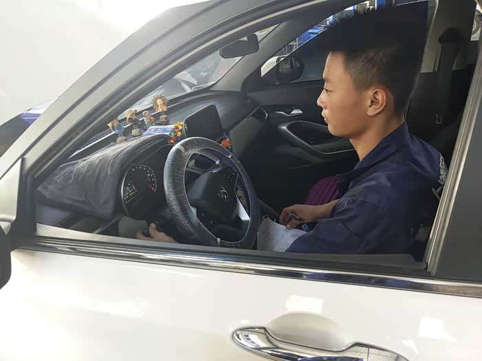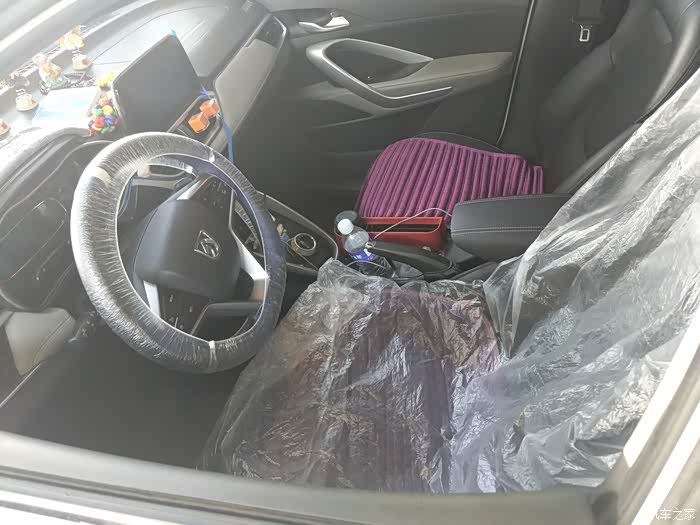 把方向盘、座椅、脚垫套上所谓的三件套