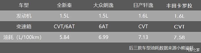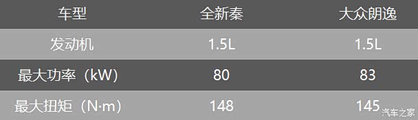动力方面,全新秦燃油搭载的是一台1.5L自然吸气全铝发动机,发动机最大功率80KW、峰值扭矩148N·m,动力参数和大众1.5L自然吸气发动机相近。