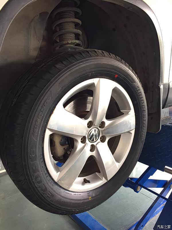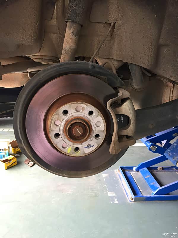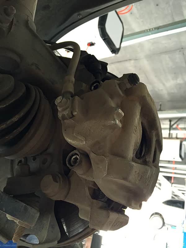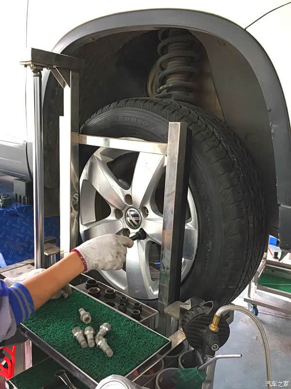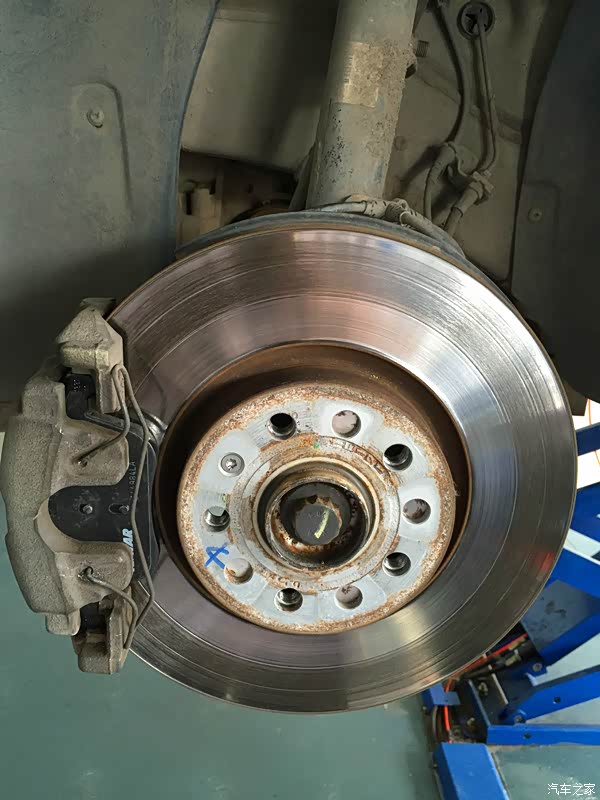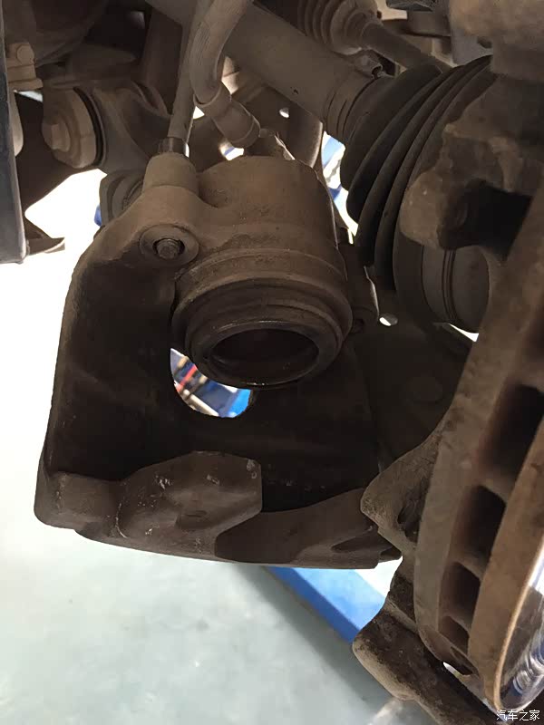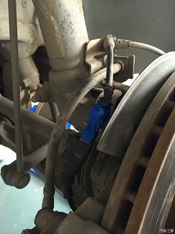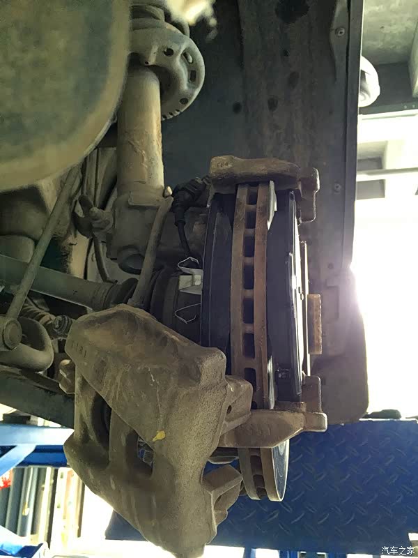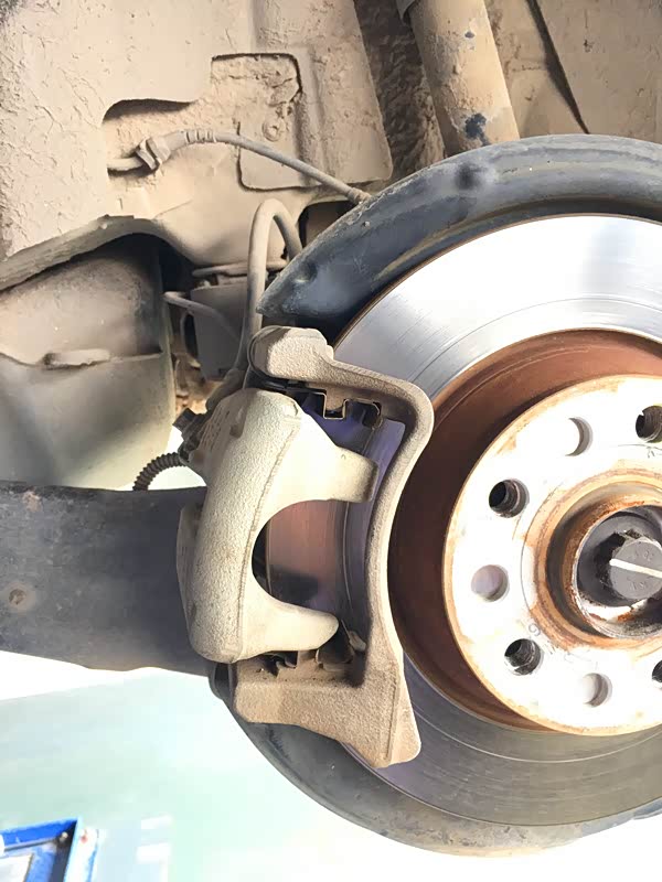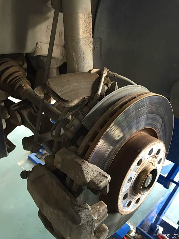 拆卸另外一边的前轮,这边的刹车片是没有报警线的,所以简单多了,步骤也是一样的,这里就不详细的介绍了。