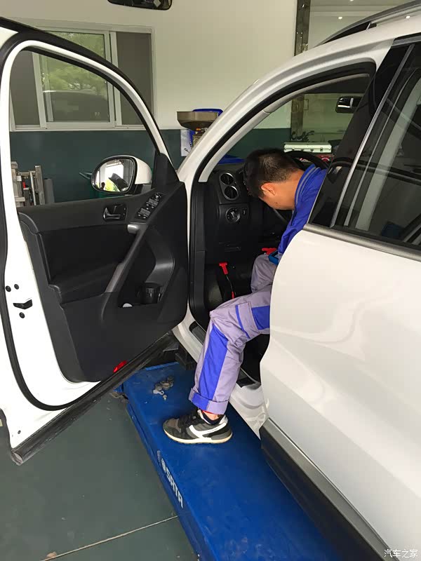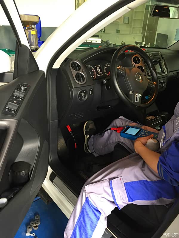 车子是途观2.0的,这个车子是电子手刹,在拆卸后面的刹车片的时候要连电脑解锁下电子手刹,不然后轮的刹车片是取不下来的,这个就是老师傅来了。