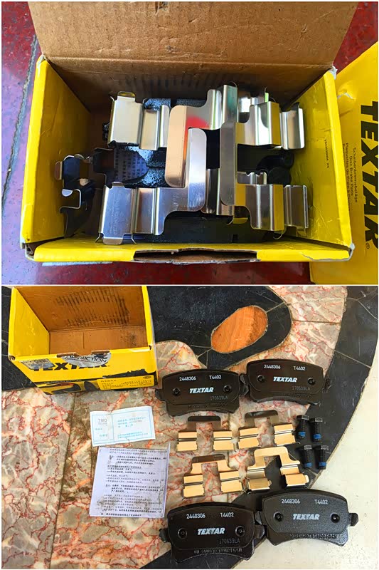 装上新的TEXTAR刹车片,有夹子的装里面。