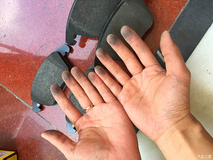 拿完四片刹车片手全黑了。