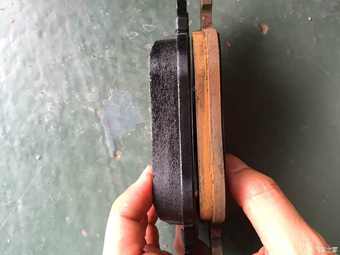 新旧刹车片对比,这个前刹的,不对比我觉得老刹车片还挺厚的,一对比就很明显了。