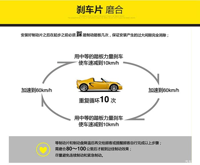 关于新刹车片的磨合,我这里在网上找了一张图,很清晰很直接的告诉你怎么磨合,车子交到我手上我也是这么磨合的。