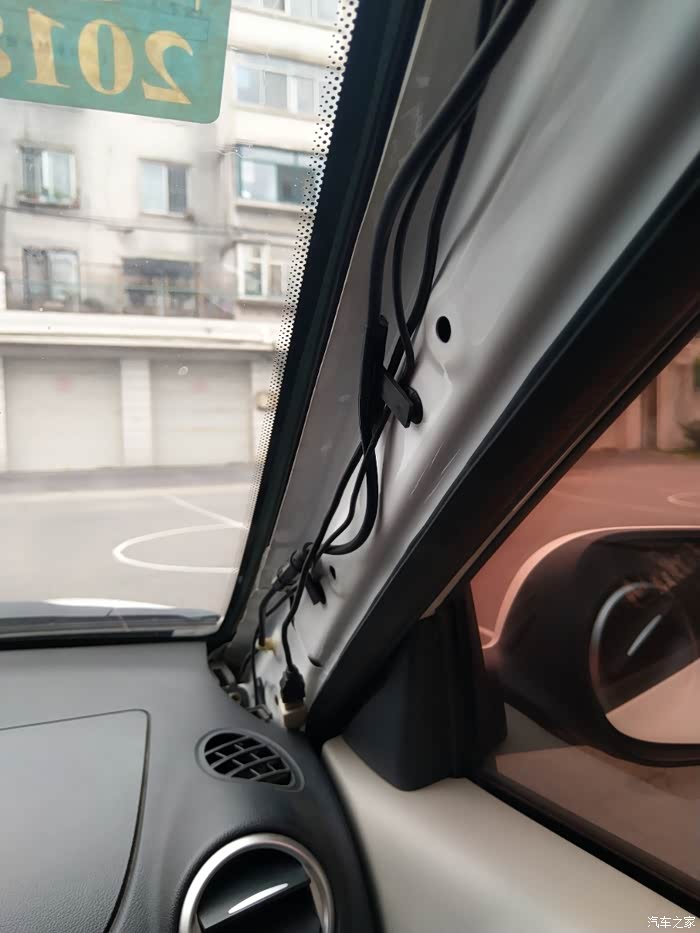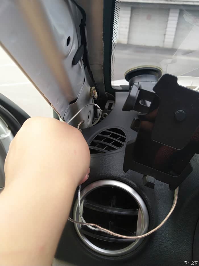 要想装,先得拆,据说高音按在A柱效果最好,那就先拆A柱装饰板,找好位置打孔,由于手头没啥工具,就一瑞士军刀,再加上装饰板里面没啥空间了就按在外面吧,虽然难看,将就吧!