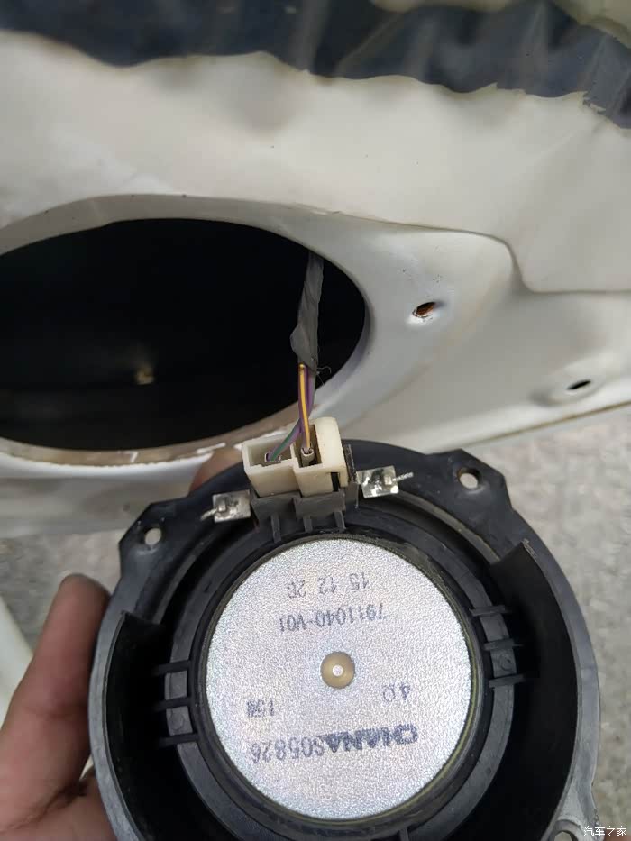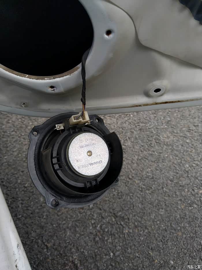 换前门喇叭,这个是右前门,拆门板我就不发了,大家应该都会吧,就三颗螺丝,之后就是一顿往下薅。