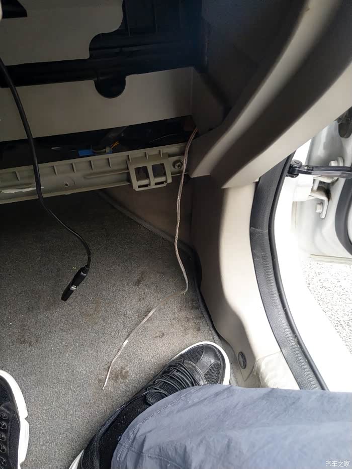 把高音头的线从这里穿进去,如果要把分频器安装在车门,需要在门轴处走线,还是没工具一切从简,最后决定把分频器安装在中控台里面,又可以防潮。