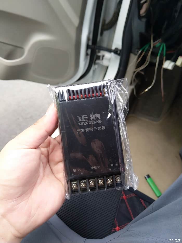 按照分频器上面的标志,将他们连接好。放个歌听听,天啊!终于不再只是有个响了,有高音,有低音,音效丰富了许多,原来的喇叭的声音根本没有层次感,都是一个动静。更改机头里面的效果器,声场也有了明显的变化。
