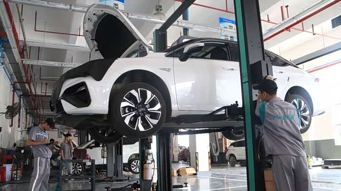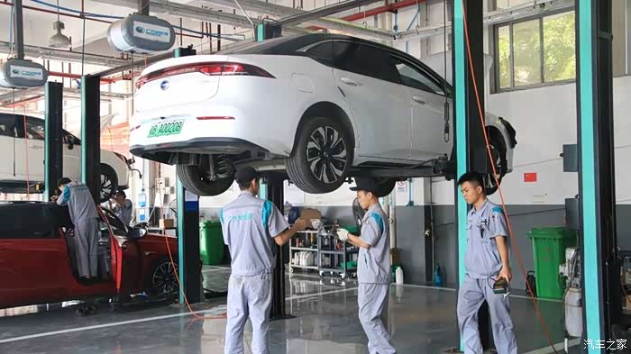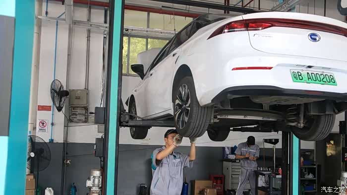接下来,为大家分享保养过程中的一些环节:一上来,就先把Aion S给吊起来了,哈哈哈~
