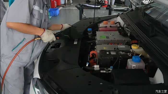 再紧接着就是检查冷却系统、电源系统、高压线束等等;这些项目,别看多,师傅也是分工协作,也没要多久就搞完了。