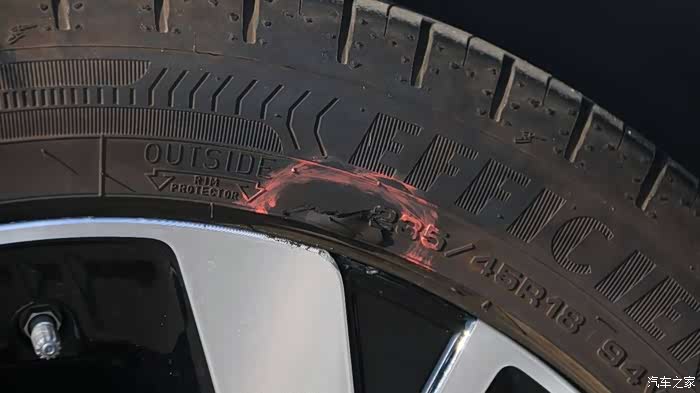 更惨的是右后轮的轮胎都被搞破损了,而且轮毂也有些损伤……