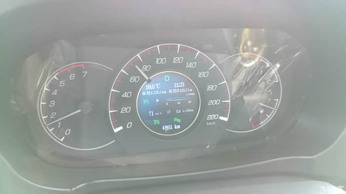 前车速度慢,我也跟着把定速巡航速度下调到71,表显5.9L了