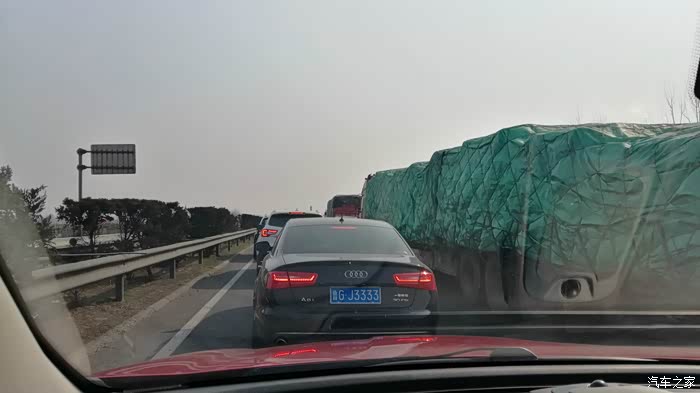 走了不久,前方施工,拥堵路段,走走停停,就像济南上下班高峰期一样。油耗一直在上升