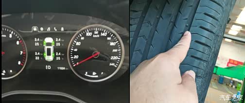 我先检查一下有没有八字磨损?这个非常关键,跑了一万多公里了,我的宝骏530的底盘悬挂表现的非常完美!四条轮胎磨损均匀!车辆不管是出现内八或外八磨损,在没有出现过碰撞修复和跑过极端路况的情况下车子一定不应该也不允许出现八字磨损(专业叫锯齿型磨损),如果你的车辆真的出现八字磨损不要听4S店忽悠你说做个四轮定位!要知道你在没有出过事故没有跑过极限路况的情况下出现八字磨损那就是设计缺陷了,你只有自认你家风水不好倒霉了!胎压出厂标示是2.3,但我个人多年的使用经验是SUV可以把胎压打到2.5,这样可以至少省10%的油耗,你想想,自行车是不是打足了气好骑?汽车也一样,汽车的轮胎绝对使用寿命是6年,正常轮胎到了5年即使是磨损度没有到达要换你也一定要换!记住是5年必须要换下你的轮胎,包括备胎!轮胎我手指指的这个点是轮胎的极限磨损点,1.4mm ! 磨损到这个位置就必须要换胎了!
