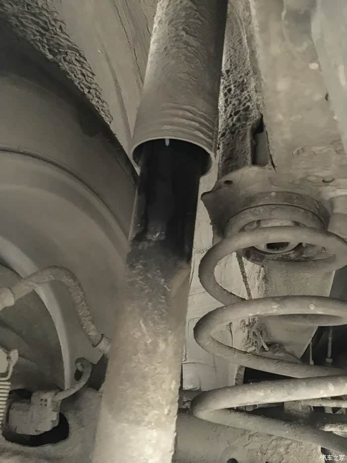 最后来看看减震,这是右边,已经换过一次,用手摸了,干的