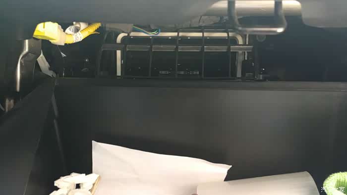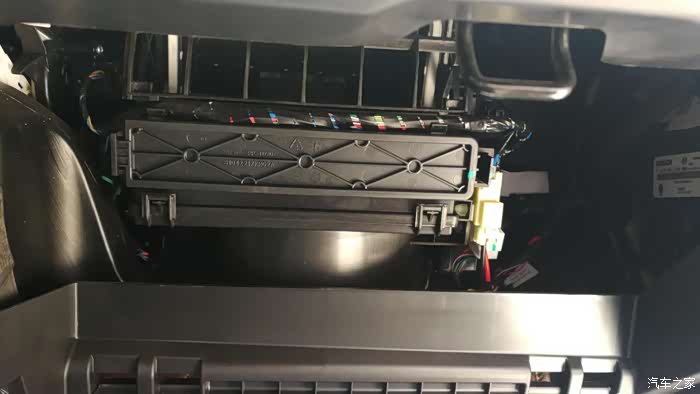 取出手套箱后,我们会看到空调的鼓风机以及空调滤清器。