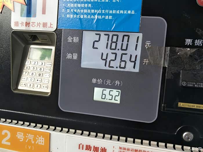 上个月的油耗数据,我每次加油都是加到跳枪就不加了,然后小计里程清零。跑了559公里加了42.6升油,花了278,我是会员卡加的油还有优惠没升少2毛将近270元。合算下来百公里7.6升,每公里0.48元。