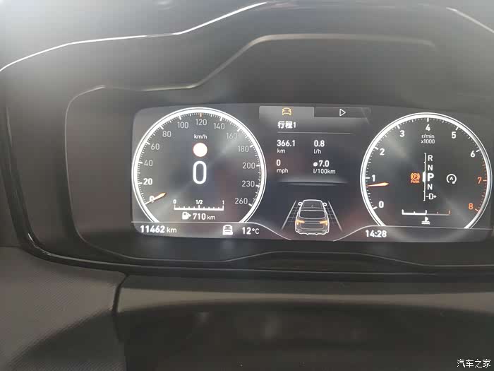 本次测试,行使366.1公里,用油28.13L,合计百公里/7.68L