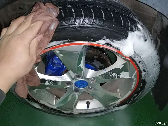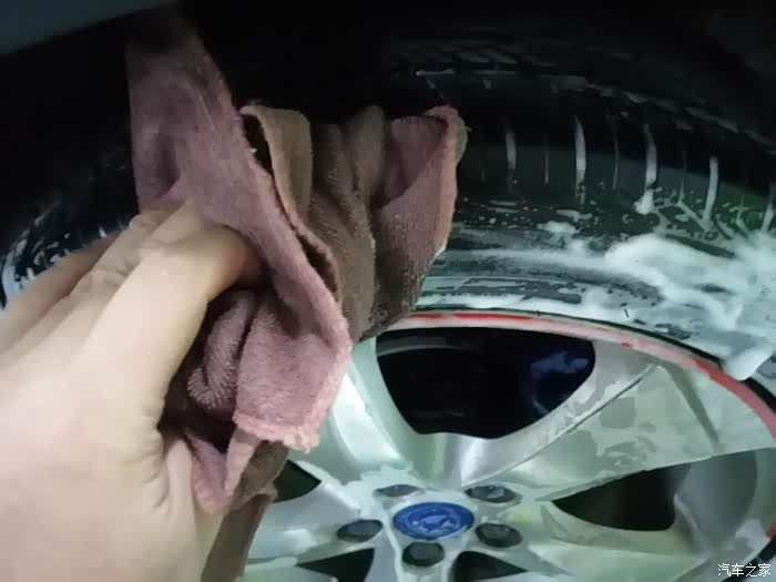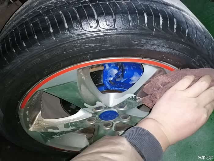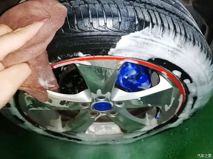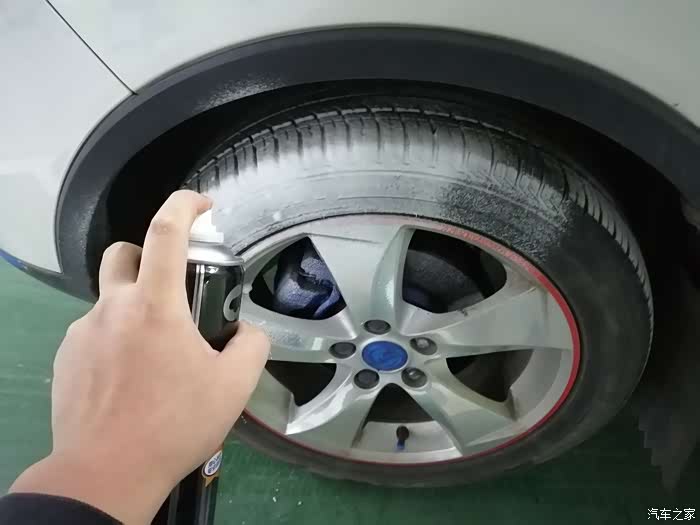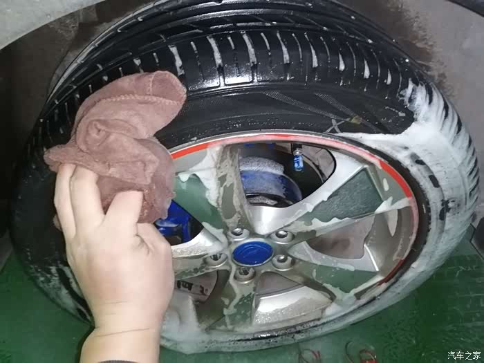 等待大约10分钟所有,开始用毛巾擦拭轮胎!