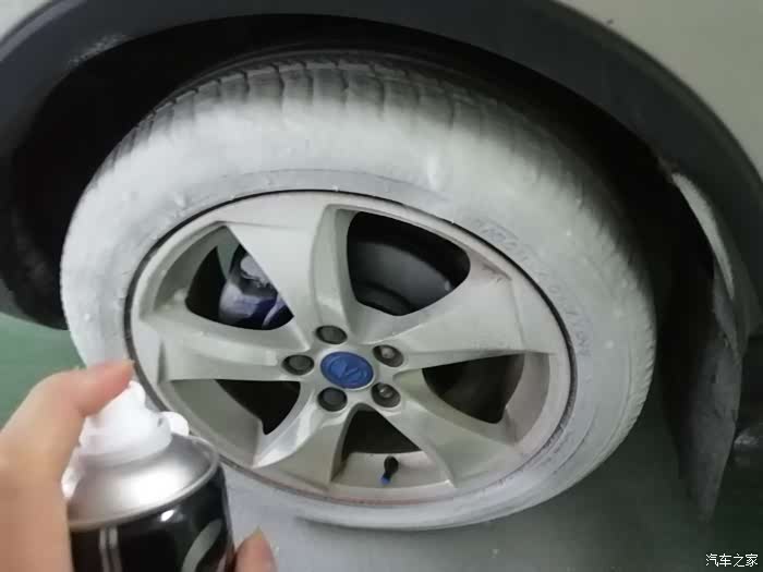 长安cs35是我人生中的第一辆车,购车的主要用途是家用,平时有少量的短途自驾游,上下班的次数多点,所以跑的里程不是太多,目前行驶了3.5万公里,对于长安cs35各方面的性能还是比较满意的。洁白的车身下,一颗强劲有力的心,爱信4at的变速箱,换挡也很平顺。安全行车,最关键的一条就是轮胎,所以买车4年多了,每次出门前我都会仔细的检查下轮胎,虽然我行驶的里程有点少,但是轮胎毕竟是属于消耗品,况且还是橡胶制品,经过4年的风吹日晒,已经有点磨平和老化了,这跟行驶的路况有关系的,我记得听过一个专家说过,橡胶制品的极限时间是6年,所以我的轮胎应该还能坚持一段时间,看到有不少的车友都在保养自己的轮胎,我也忍不住动手了,车友们用的物品也是五花八门的,表盘蜡,轮胎蜡,等等吧,反正都是对轮胎好的,我选择了一个既能清理,又能够保养的泡沫光亮剂,因为之前车友买了两瓶,用的效果不错,还剩下一瓶没用完,直接给我了,我打算用它好好的清理保养下轮胎。今天天空不作美啊,下雪了,只好进地下停车位操作了,好了,给大家上详细的过程吧!
