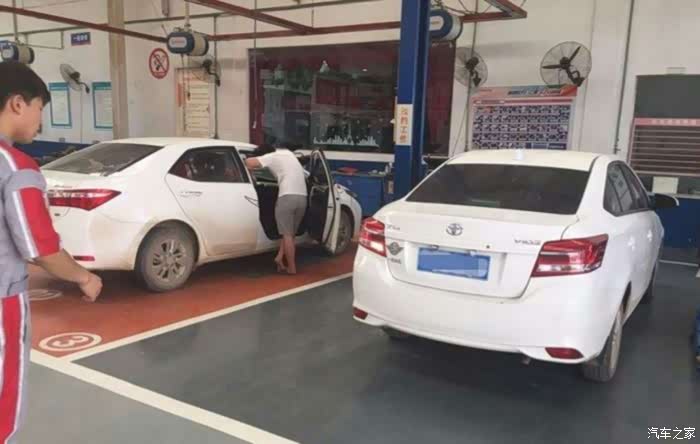 两位维修师傅给我的小威做全面详细检查,比如底盘、轮胎等,还把那些螺丝什么都帮我给紧了紧,连后备箱备胎也给我做检查了。