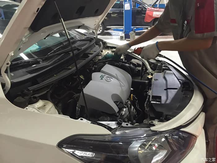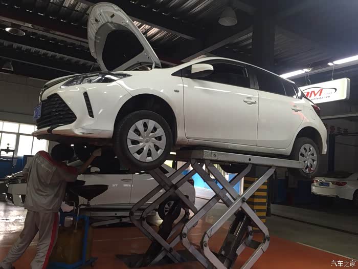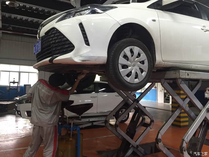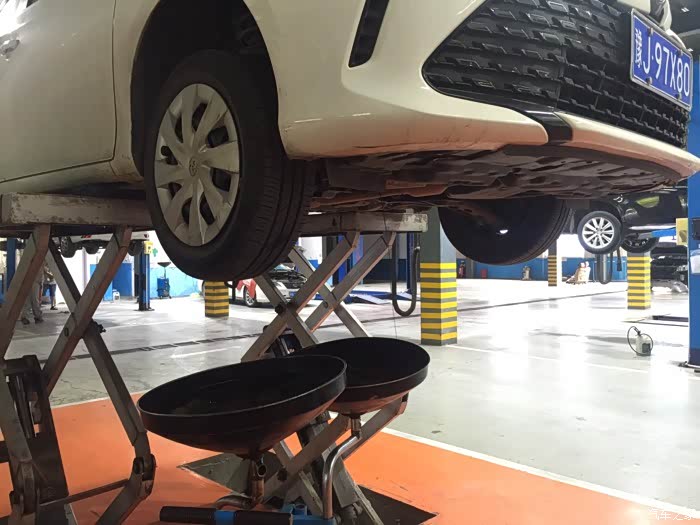 被架起来的小威售后师傅已经准备好了保养的东西开始准备做首保