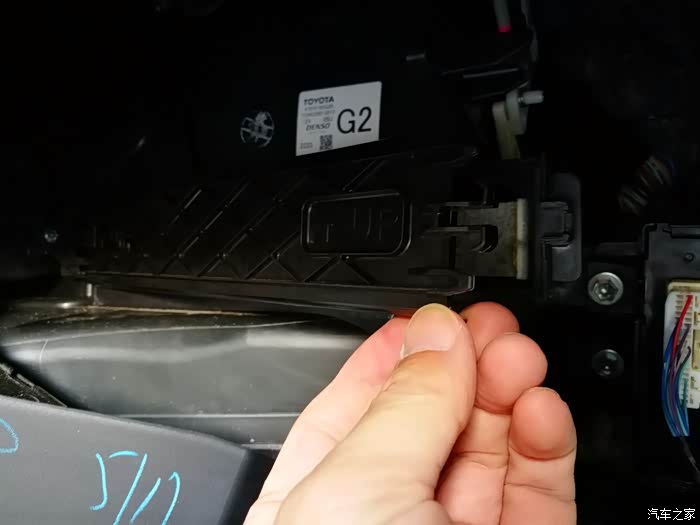 装回去时,注意手套箱一定要尽量放平,然后顺着这个方向,卡着左右两个卡槽后向上推。