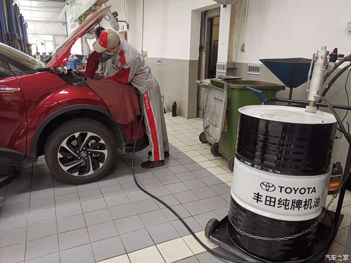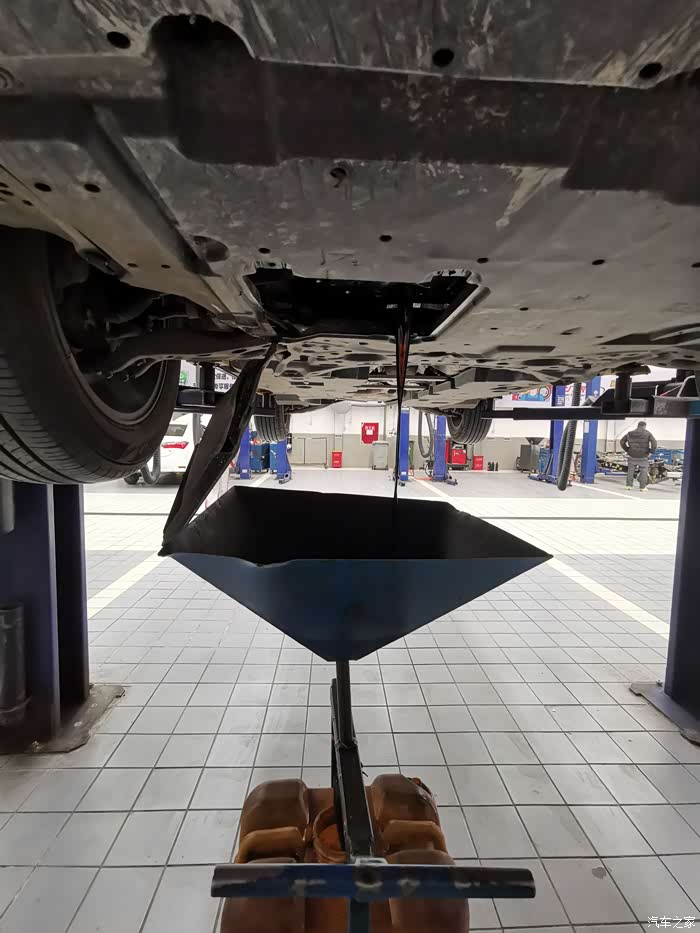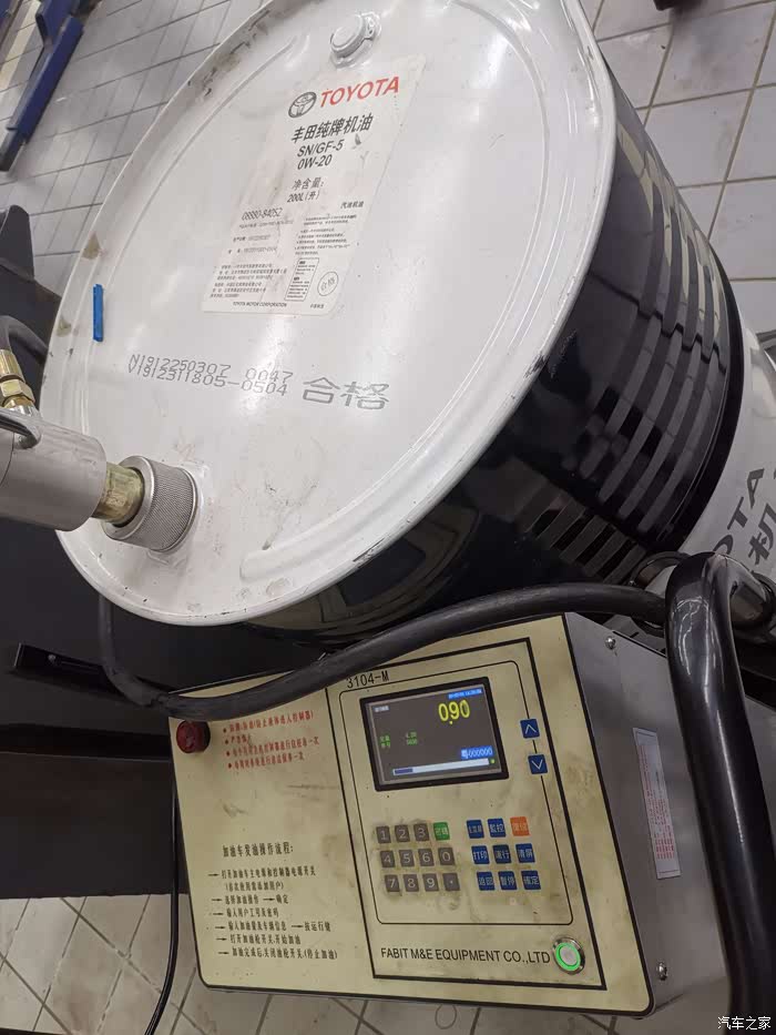 以前机油是小桶装,现在也换成了大桶装。电子显示的设备抽取。表上能看出提取刻度。能够很精确的加注,不管你是要4.2升还是4.5升,没有任何浪费