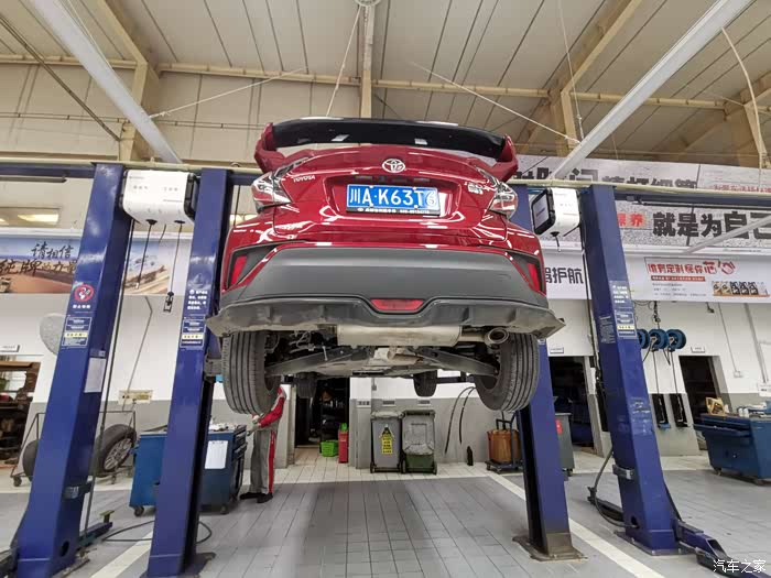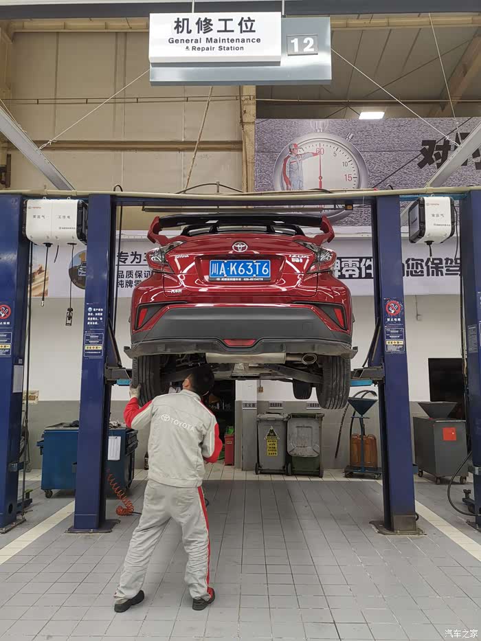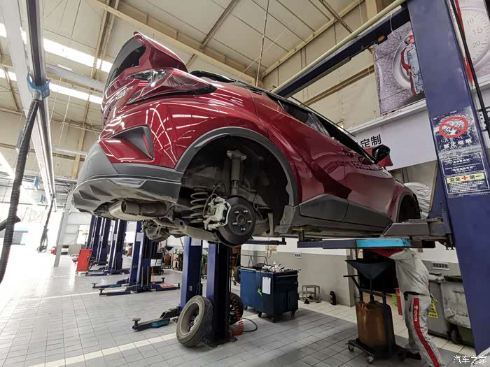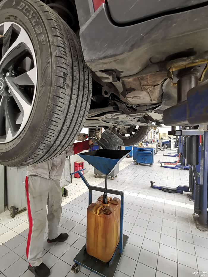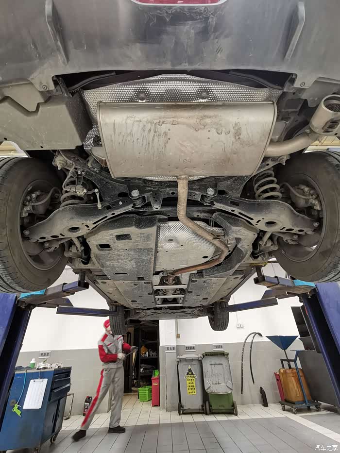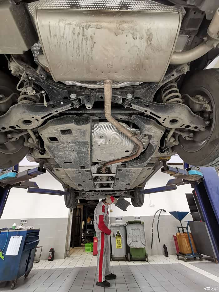 师傅先给我检查了车底有没有漏油的问题,然后看了看底盘整体情况。