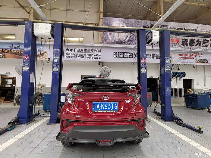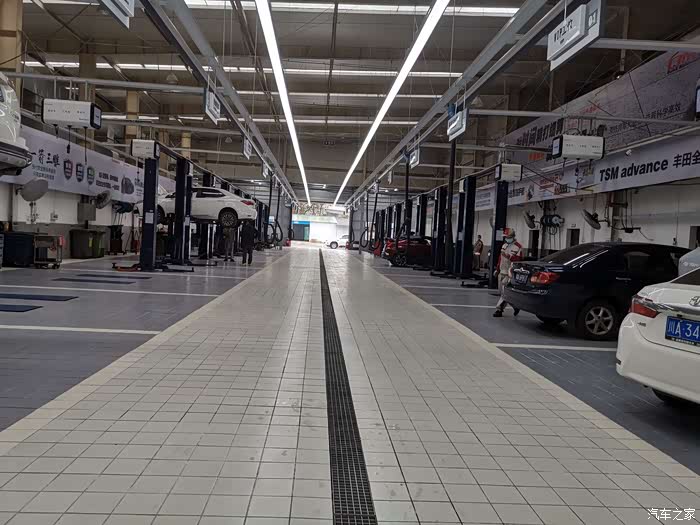 因为我是预约车,车很快的开到了工位上。准备上架保养了
