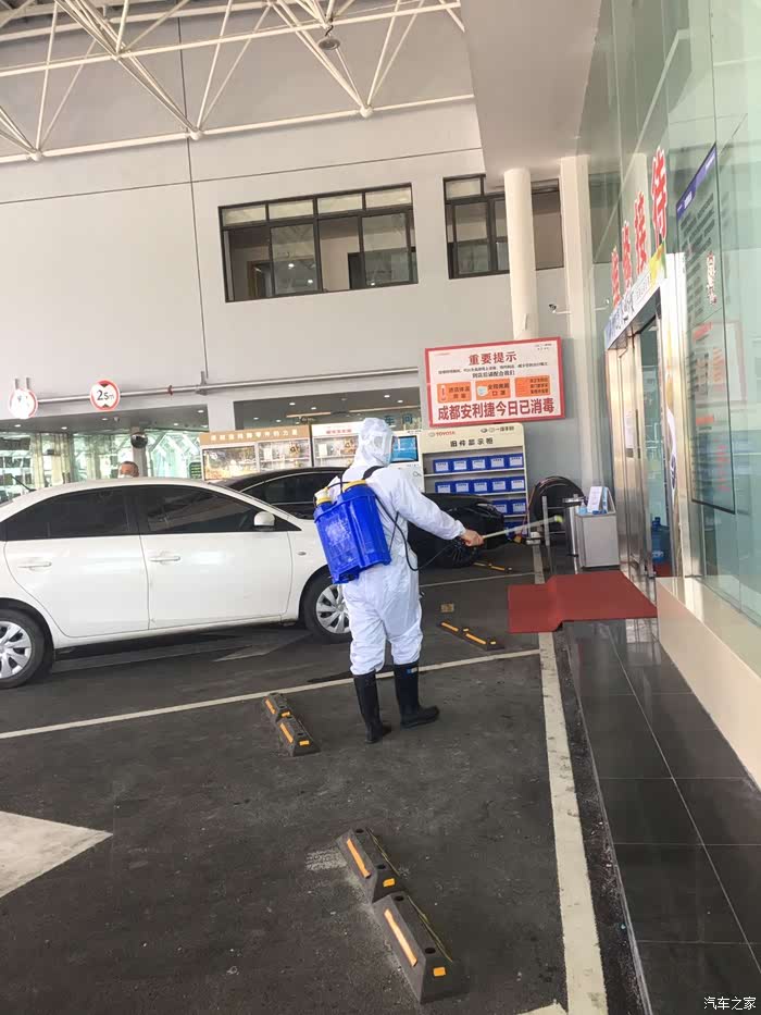 接待人员接完车后,让我先用酒精消毒下再进入室内。特殊时间,这个当然可以理解,为了个人也为了别人的安全。