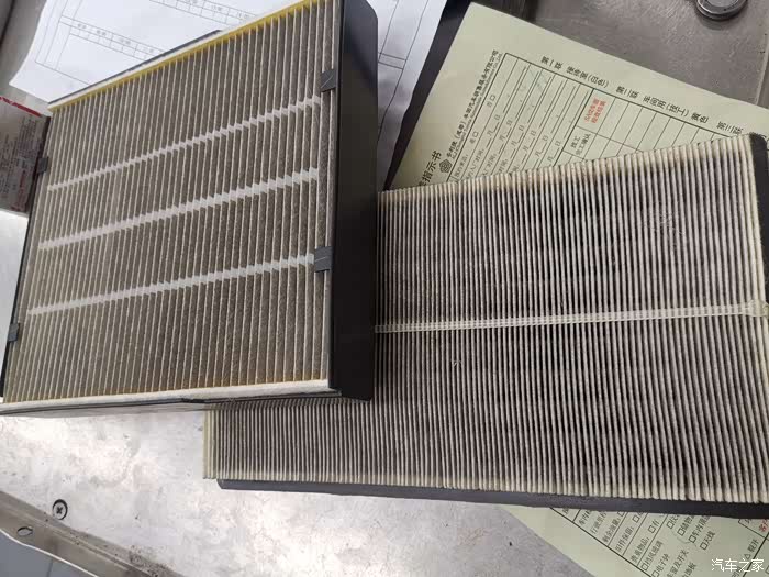 空调滤清和空气滤清取出来检查了一下,不是很脏,我觉得还能再用用。所以没有更换,等夏天的时候再更换吧。就简单的吹了吹