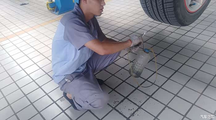 更换刹车油要2人配合,一人在车上不间断的踩刹车!