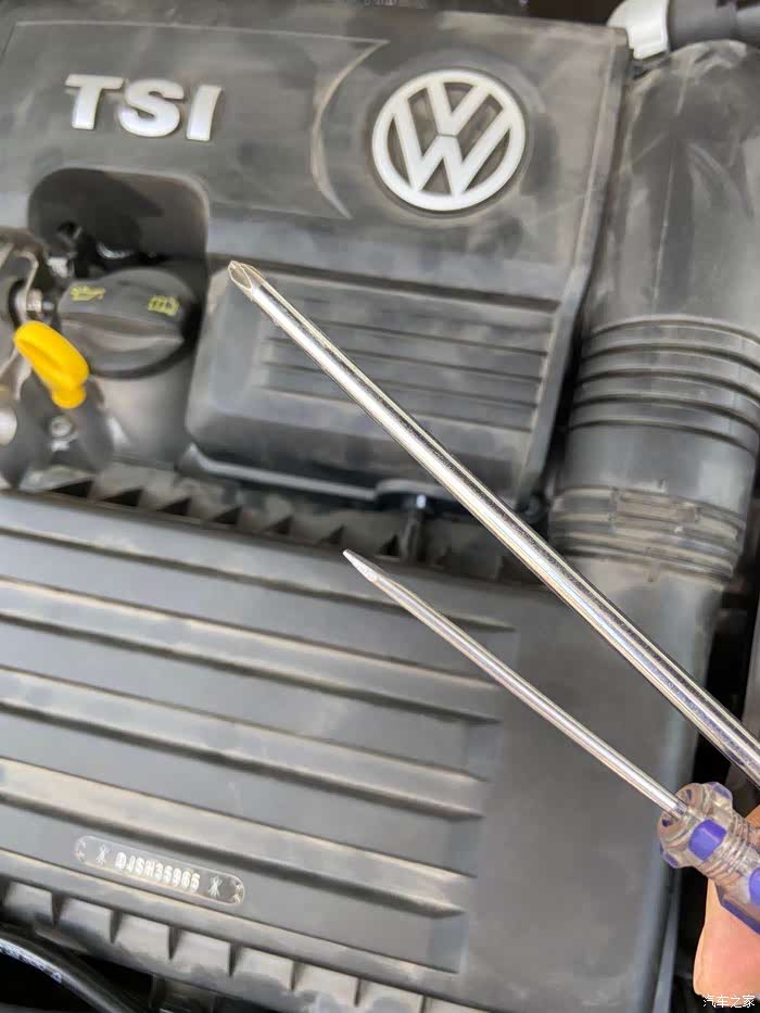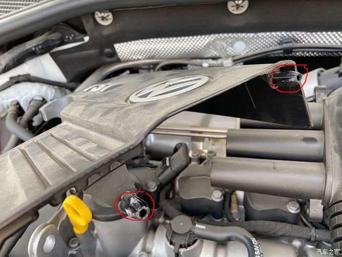 第一步是要去掉发动机装饰盖,有三个卡扣固定
