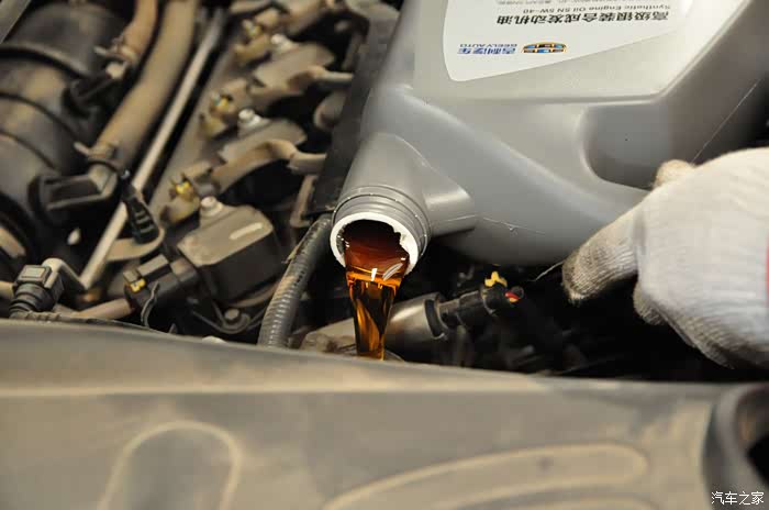 换上新的机滤后就可以加新的机油了。。清亮的新机油