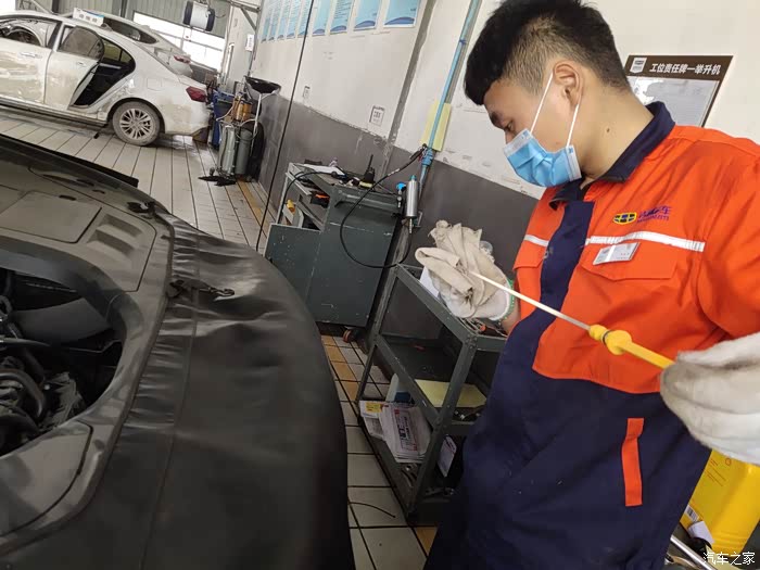技师很细致,怕多余得油液溅到外面