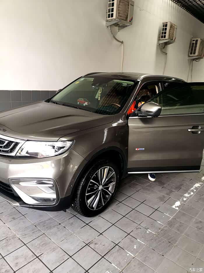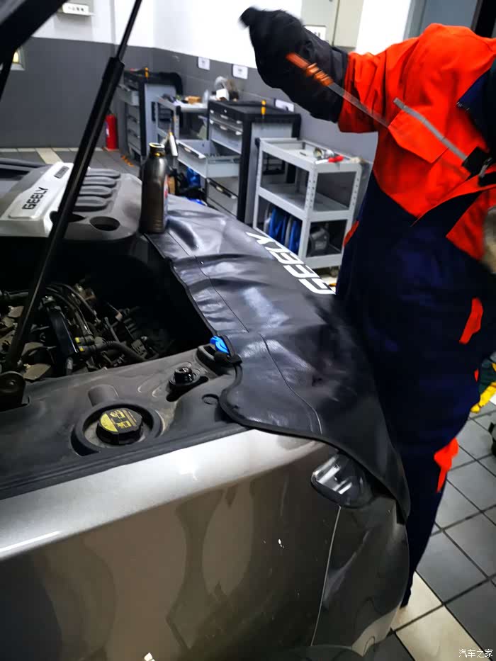 等待保养中,欣赏一下博越的前脸,水滴涟漪型进气格栅看起来很有特点,在国产车里辨识度极高。