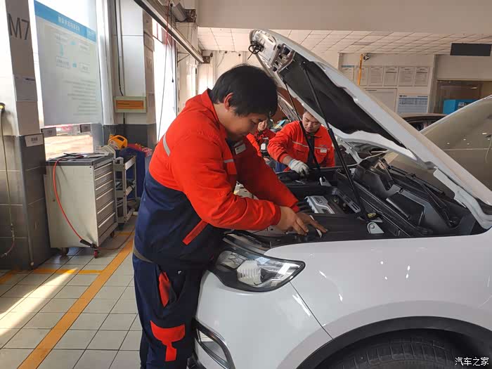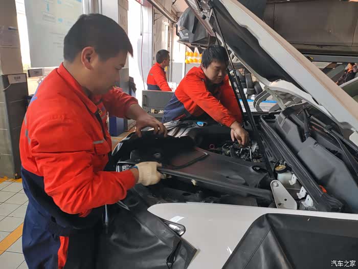 一停下车,售后即上来迎接,然后是检查车况,登记车况记录,并给爱车套上防护套做好防护工作