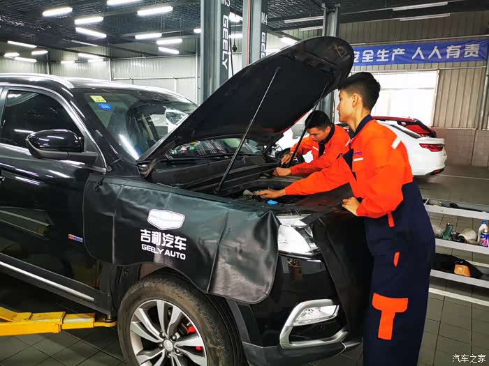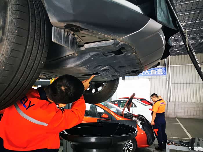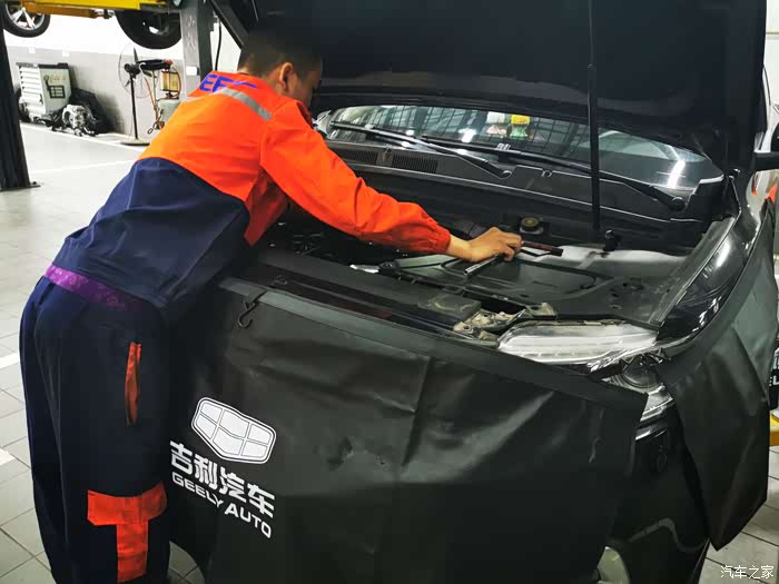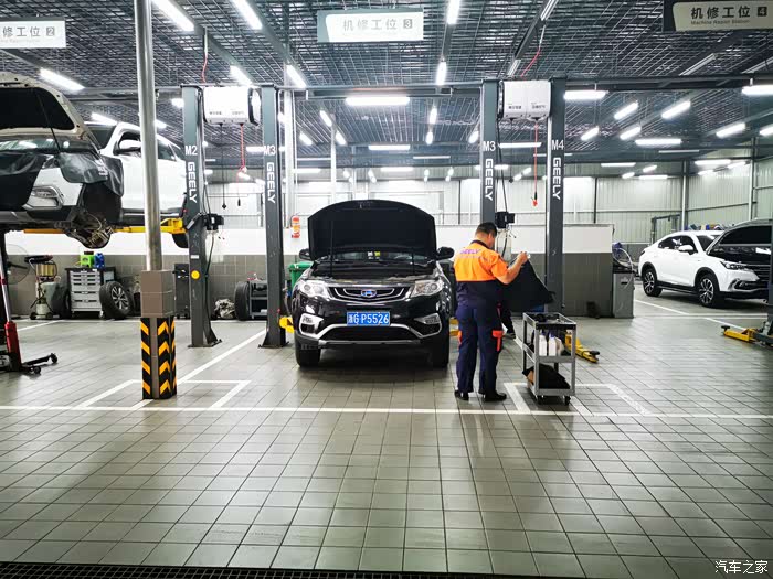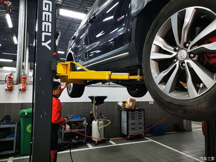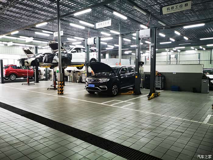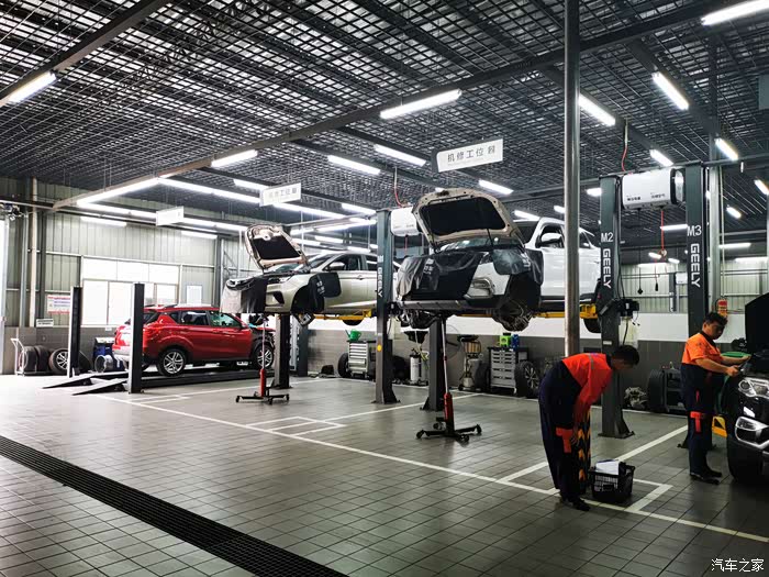 因为来的早还没人来保养,技工师傅直接把我车开进车间,看着博越停在那里就像一个安静的美男子