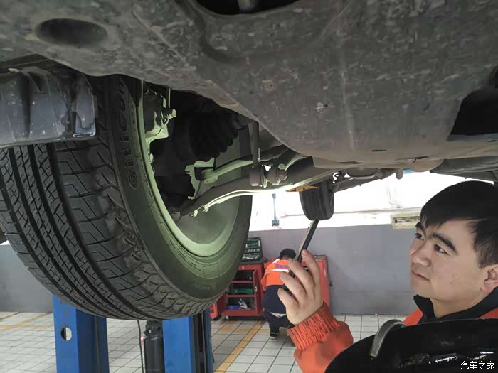 师傅趁这个空档又开始检查其他地方,这是看悬架这块