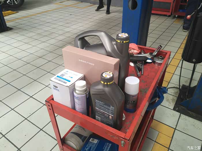 工作人员热情的接待,讲解流程和核对需要做的项目,之后开单子,引领我到休息区,有电视按摩椅茶水饮料和小食,简直是太热情了。我还是不去休息啦,来看看保养流程吧。这是师傅领好的材料,这些东西等下就派上用场了。