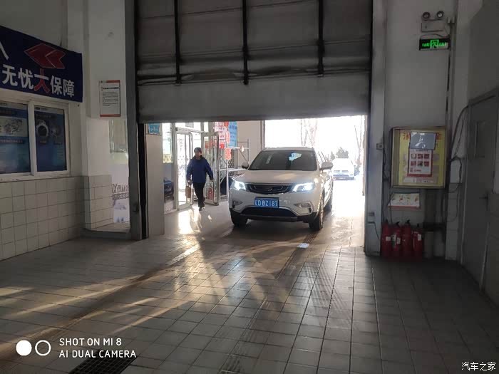 上车,点火,就出现该保养的提示,很贴心。所以他才能稳定的发挥它的作用,体现他的性能,带我去我要去的地方。因为这几天班比较忙也没有时间去给车辆做保养,每次发动车都会提示保养。这不赶上今天工作有空闲时间,我是提前一天跟4S售后电话联系预约了一下,定了一下大概时间,以保证到店能缩短等待时间,这一点我们当地的博越4S店做的还是比较不错的。给个赞!!!