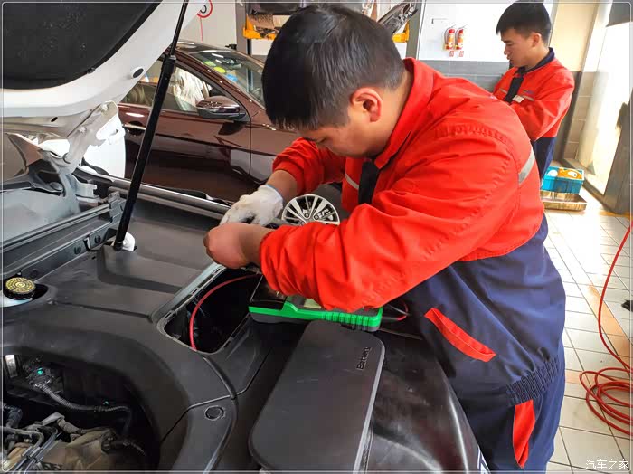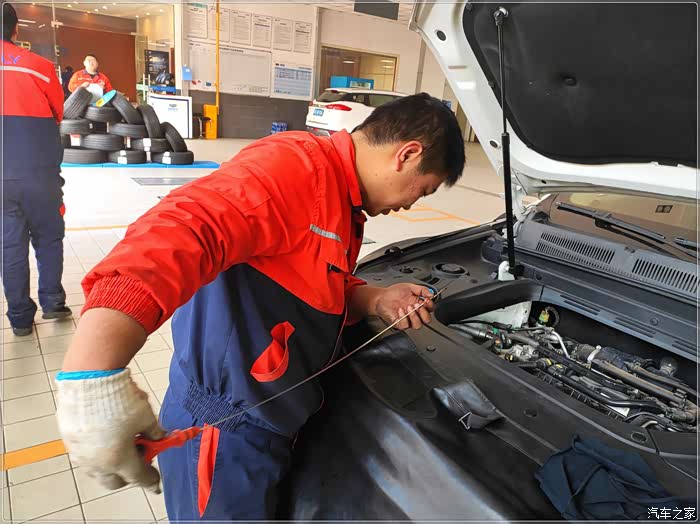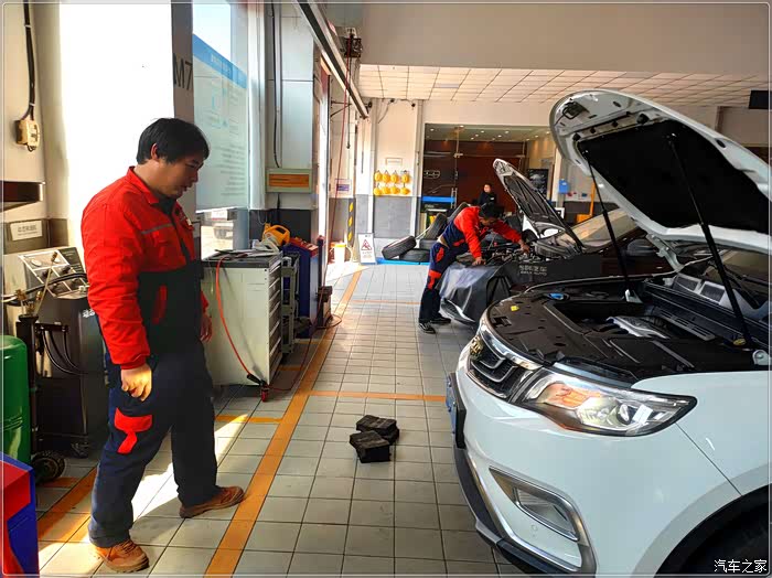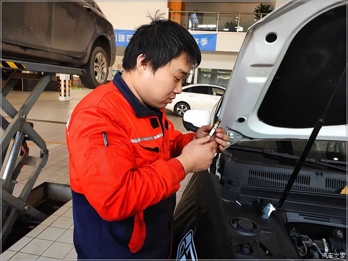 按约定时间,抵达4S店,一停下车,接待小哥即上来问候。如果车辆长时间不保养,加上作为代步车在市内经常遭遇堵车,什么怠速不稳,聚集积炭、油耗变高,轮胎气压变低等状况发生在所难免。所以作为车主的我们除要在正常的保养周期内更换机油、机滤外,定期清洗一下节气门、喷油嘴、三元催化还是很有必要,这样不仅可以提升动力、降低油耗、减轻发动机噪音,还可以提升爱车整体的行车品质。毕竟车子是自己天天在用,发动机稍微有一点异响都会让车主们觉得非常“揪心‘”。